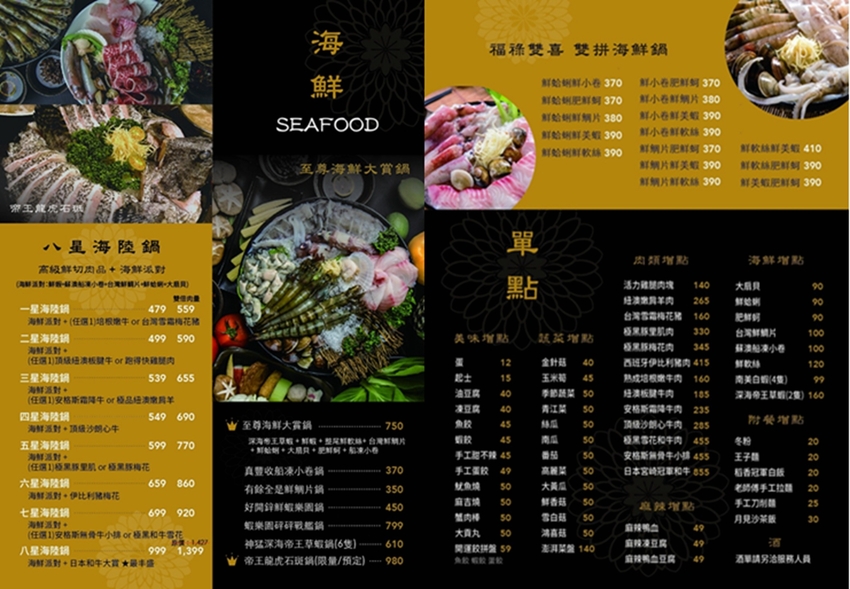 另外海鮮或是海陸套餐,也是可以有多元的搭配。