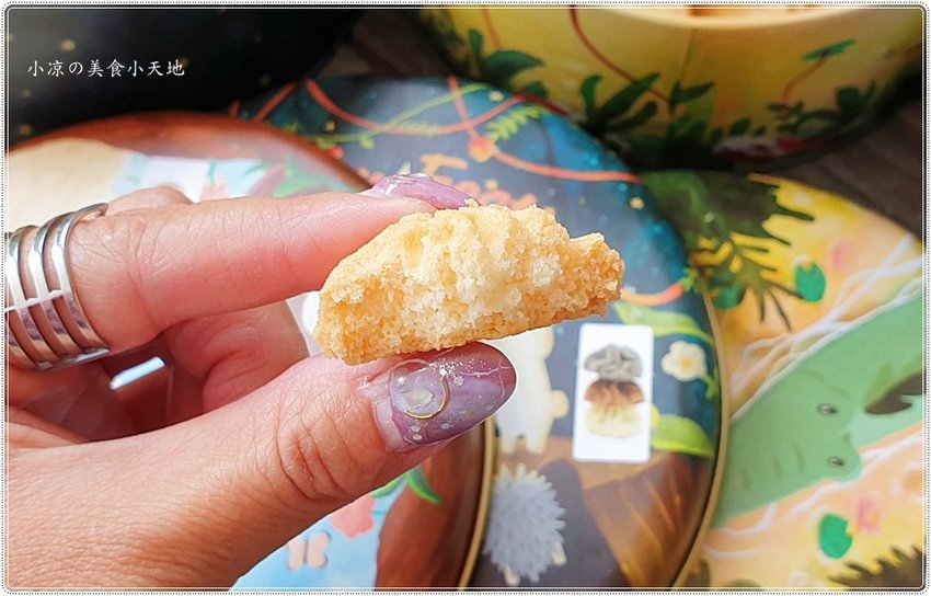 奶油曲奇餅(左二),愛威堅持使用法國諾曼第醱酵奶油、進口細密小麥粉,入口有著香濃的奶油氣息,入口即化的綿密感,讓我在不自覺覺中就嗑了好幾顆。加上奶油曲奇餅吃起來也不會太甜、卻能品嚐到曲奇的香氣、給小孩吃也安心,重點拿在手上也不會有油漬殘留在手上,跟知名的曲奇餅大不相同!