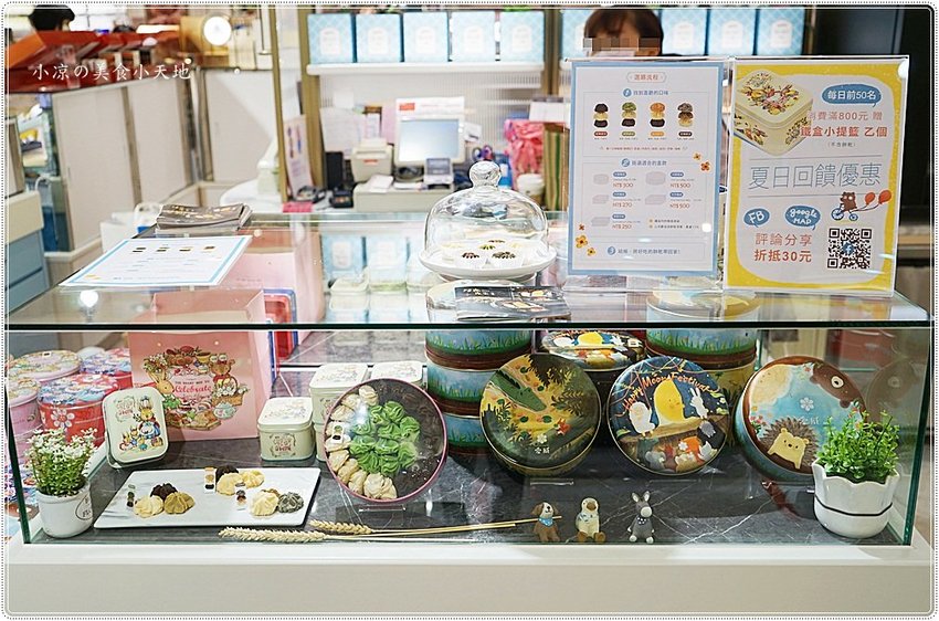 現場櫥窗擺放的就是今年中秋大推的新品月亮先生、悠閒鱷魚以及刺蝟天空三款新品鐵盒,月亮先生是中秋限定版,櫃上都會提供試吃,想試的口味當下沒有都可跟店員說唷!