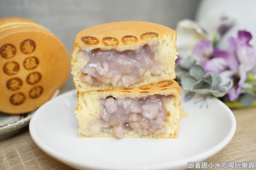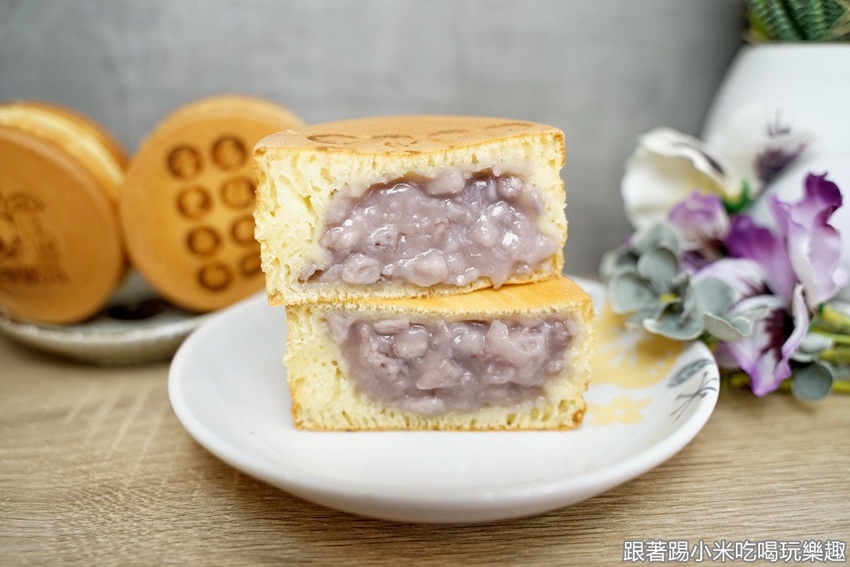 芋頭口味的車輪餅有兩款,圓來芋見泥(30元)跟慢熬大甲芋頭(30元),兩款都是小米喜愛的口味。