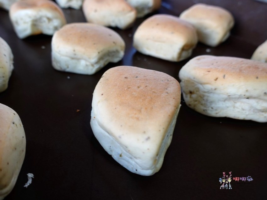 義式香料麵包有滿滿的香料香,就是吃義大利麵常常見到附餐餐包,他們的吃起來不會太乾,除了單吃還可以夾個火腿、起司,再加一杯牛奶,就是營養滿滿的一餐。