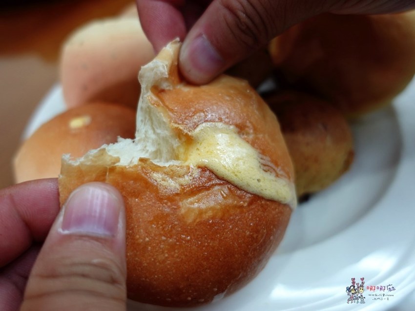 最受歡迎的爆漿起司餐包則是蠻出乎我意料之外,因為以往吃到的爆漿餐包都是奶油加卡士達醬,吃多會太油膩。他們的爆漿餐包有加入一點起司,奶香和起司香混合,Yelena還跟我們搶著吃。
