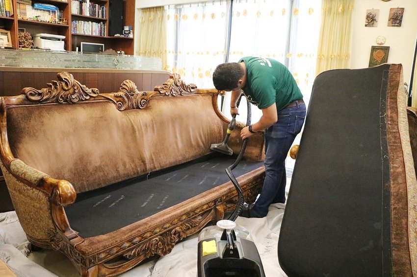 坐又銘沙發清潔做事很嚴謹,不是只要來預約就照單全收。預約當天,清潔超人要我們先上傳沙發照片,看完照片發現這是使用年代較久遠的布沙發,沙發清潔可能會有布料退色的情況,建議可以先局部試洗測試,如果不會太嚴重,再繼續清洗,如果退色太嚴重不想清洗也不會勉強。