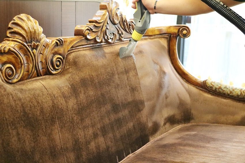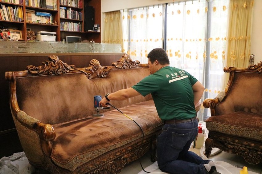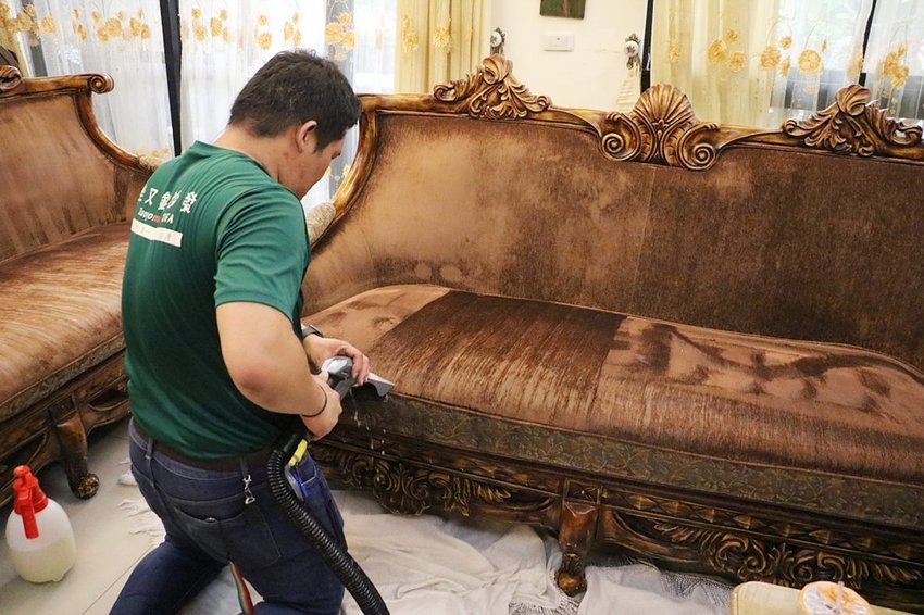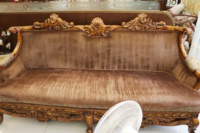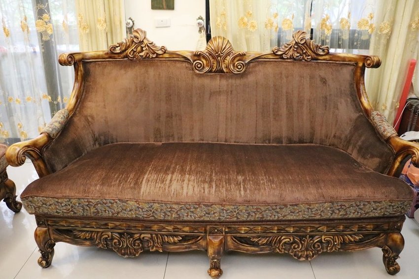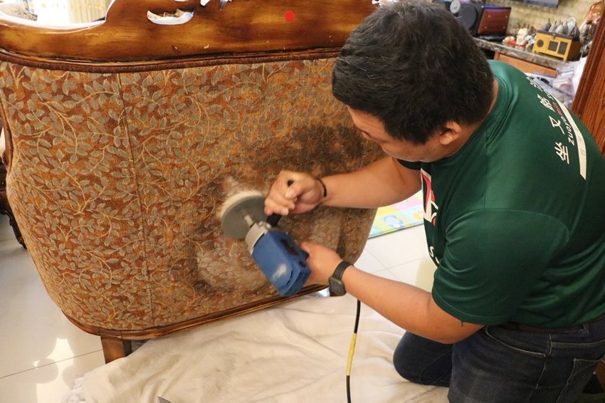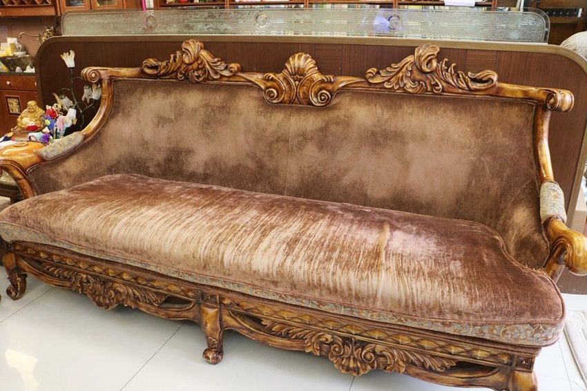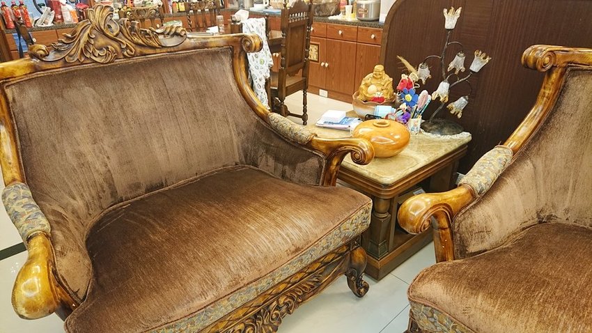 歐風沙發不像一般沙發方方正正,這樣木雕框邊邊角角很多,清洗比較耗時。