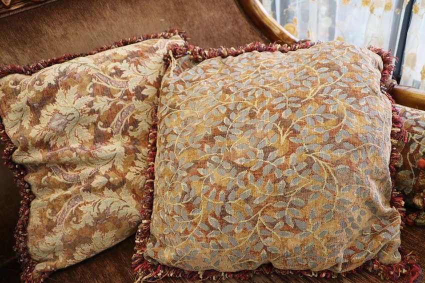 因為這一套歐風家具裝飾線材很多,丟洗衣機洗很容易勾到線材而洗壞抱枕,因此建議可以翻面丟洗衣袋,再放入洗衣機快洗。這樣有線材或蕾絲的布料最怕慢速、長時間攪拌清洗,因此快洗才是最佳清洗模式。