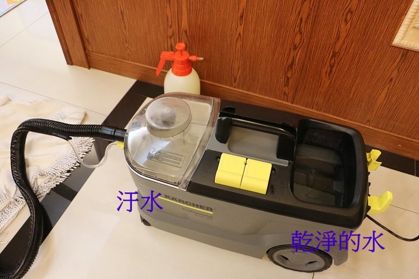 這一台德國KARCHER進口水循環清潔儀器真的有夠厲害,不但能吸塵,還能裝乾淨的水,因水循環清潔,一邊噴水、一邊將汙垢帶入汙水桶裡。