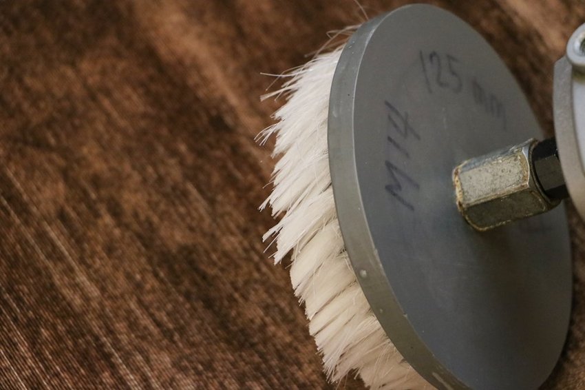 接著使用特殊機械刷頭刷洗,去除表面與淺層頑固髒污。