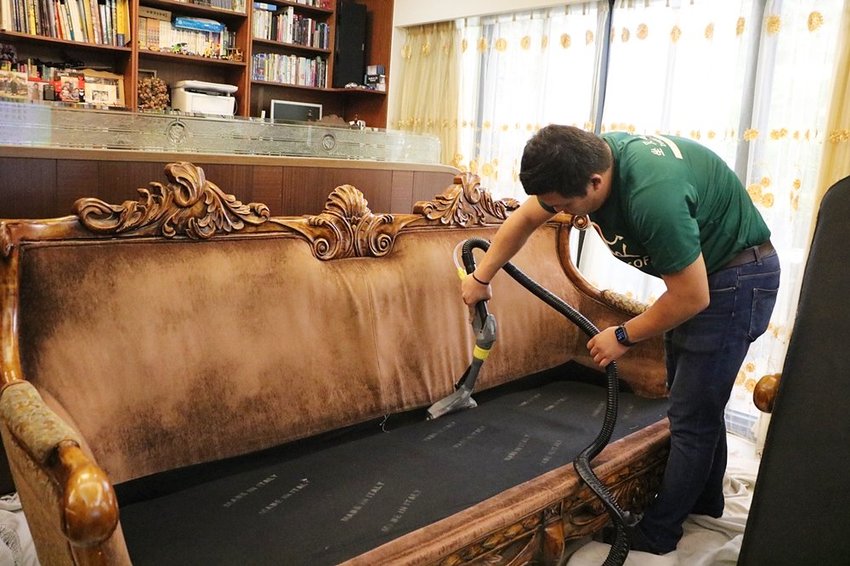 首先第一步先吸塵,將沙發表面與淺層灰塵一一吸乾淨。