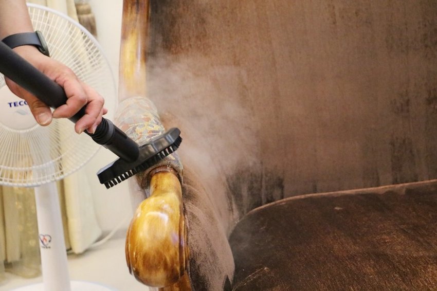 最後針對皮膚常接觸的地方,使用高溫蒸氣來除蹣殺菌。