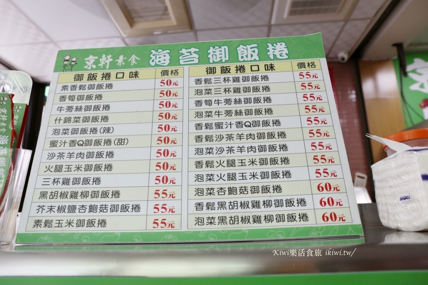 京軒素食的菜單就在櫃檯前,有紙本也有檯前的,可以看一看在點餐,餐點現點現做需要耐心等待。