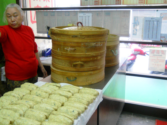 想較來說,秦記餅店的老奶奶就顯得親切,看這張照片也許會覺老奶奶臉臭臭的,但她真的很親切哦,對於每個前來買餅的客人都會笑著臉不厭其煩的告訴你該怎享用韭菜盒,蔥油餅買回去涼了更好吃,萬一想吃熱就用電鍋乾煎的方法就成。