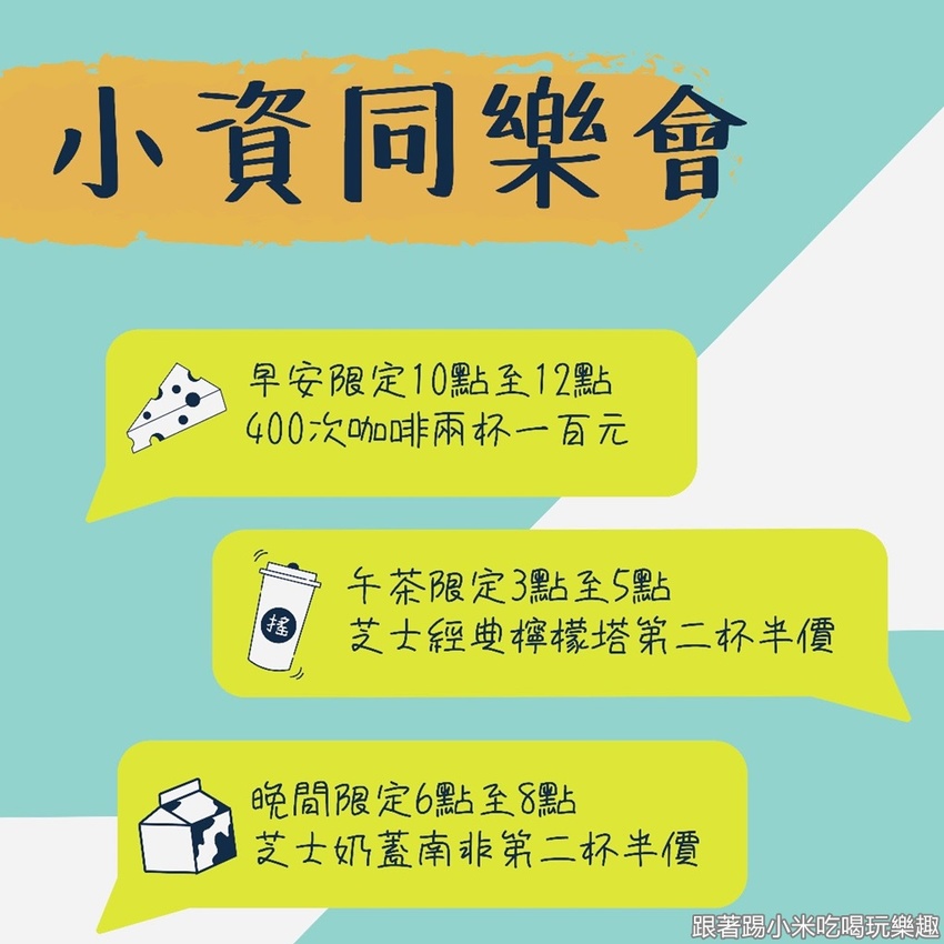 這次小米是第三次來訪了,小米不只是想再來回味400次咖啡,還要特別再推薦芝士經典檸檬塔、芝士奶蓋南非不同口味的飲品給大家,這三款飲品近期早、午、晚都有優惠活動唷。