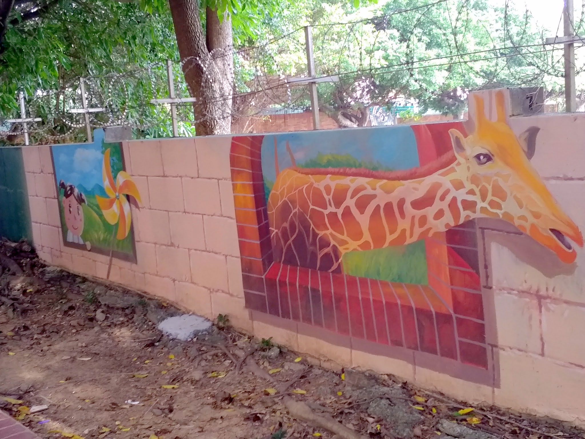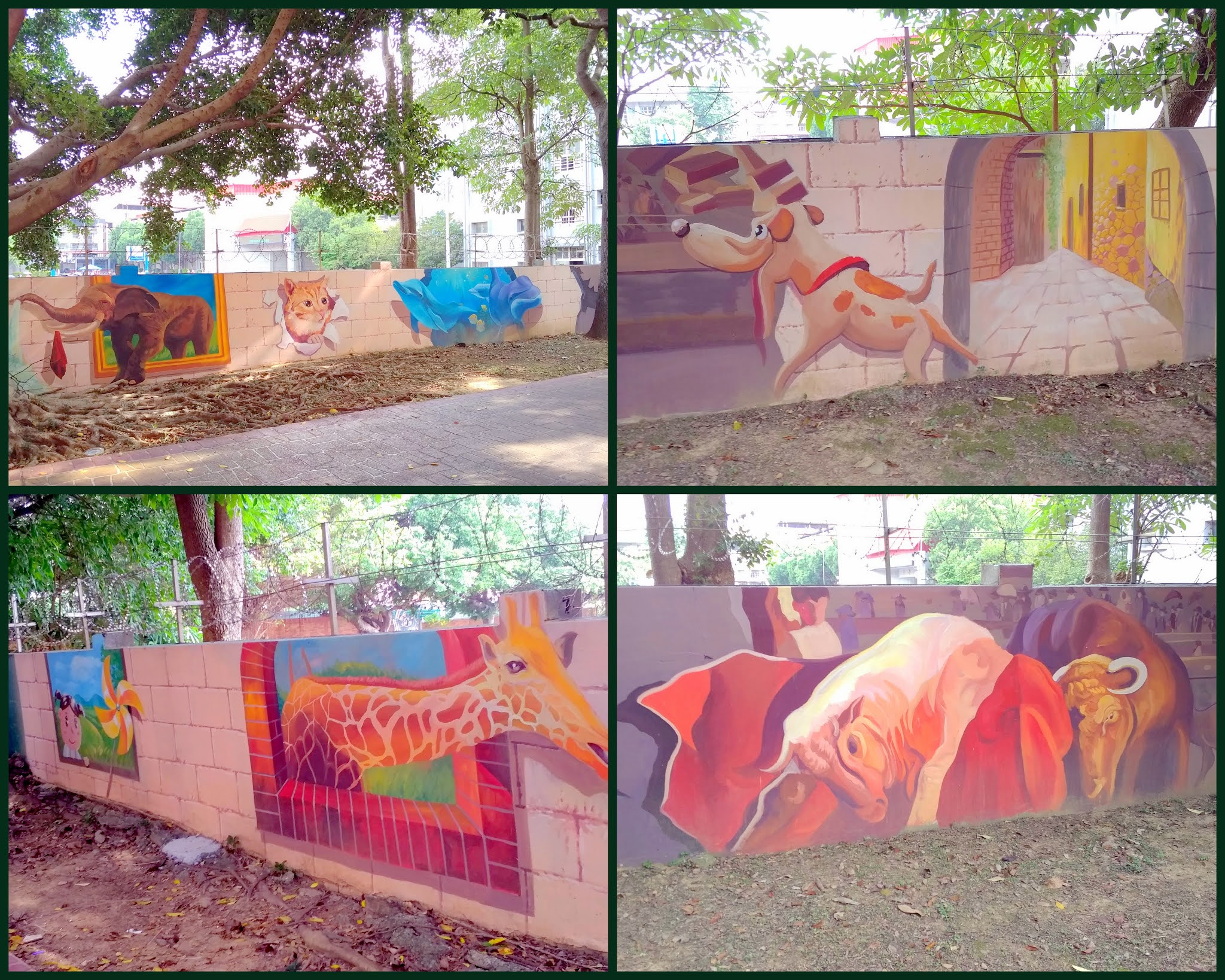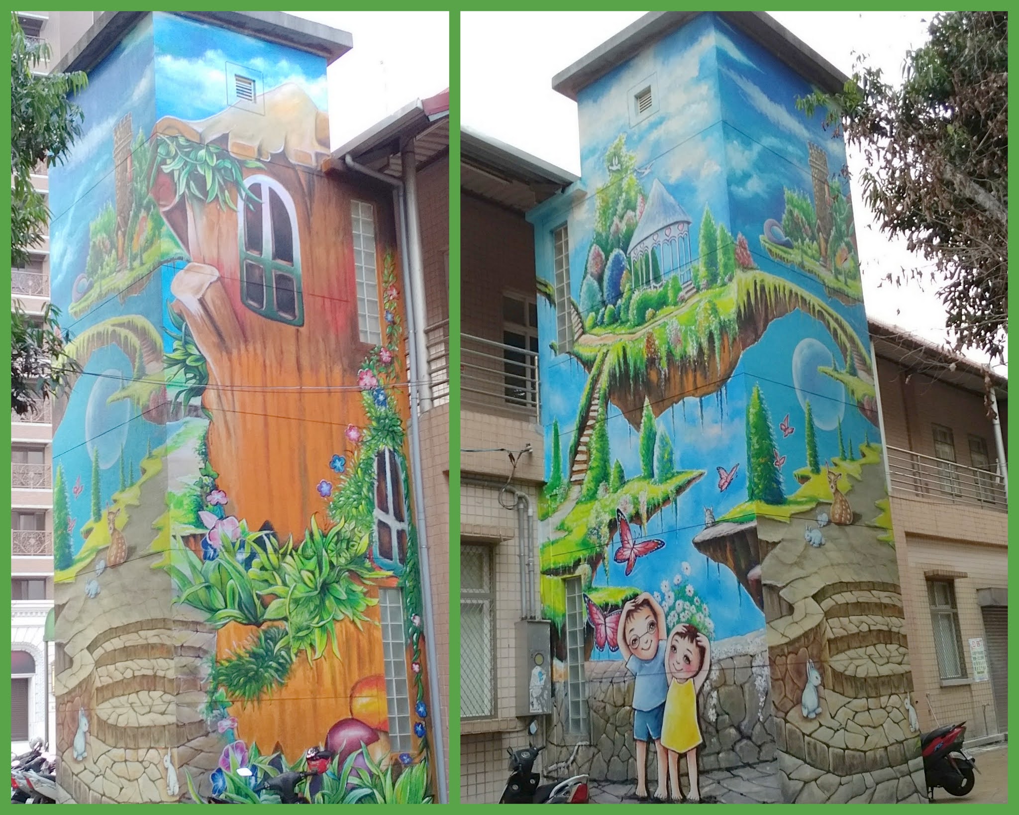 活動中心旁的水泥柱,高聳的彩繪牆面好吸睛~