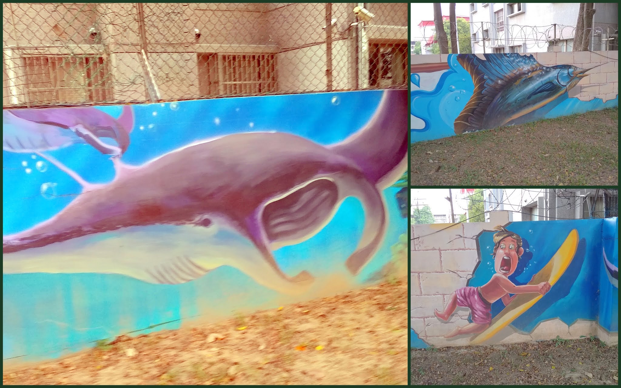 公園周邊的圍籬,都成了彩繪牆面,有海底世界~