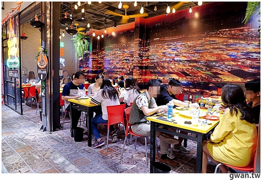 好久沒來逢甲,沒想到歡樂星裡面藏了一間這麼有異國風情的店家!連地板都是花磚圖案,覺得好喜歡,這邊算是一個開放式通道,很多人會經過,大家看到我們桌上的火山排骨跟火山蝦都會忍不住討論起來