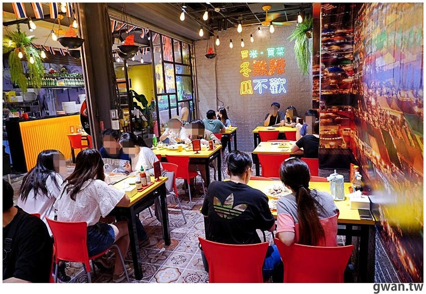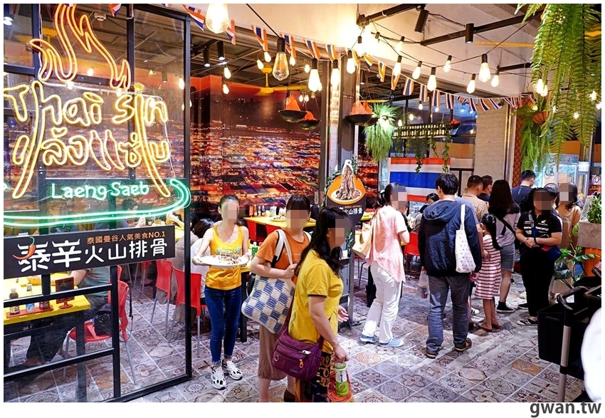 雖然店面不大,但佈置很用心,生意也相當不錯喔!背景就是泰國很有名的拉差達火車夜市,也是火山排骨的發源地,不說還真有種在泰國夜市用餐的錯覺