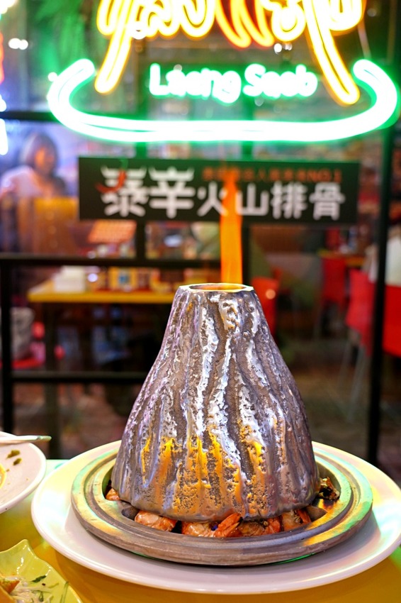 外面用一個火山蓋子蓋住,看起來相當吸睛,上桌後會倒入酒精燃燒,真的有種火山爆發的感覺!因為每天進蝦的數量有限,一天最多只能製作15份火山蝦