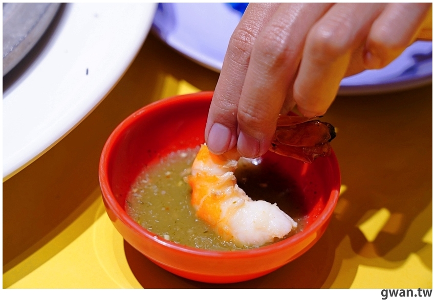火山蝦會附上傳統泰式海鮮醬,也是這道菜的靈魂,吃起來酸酸辣辣讓蝦子更有味道