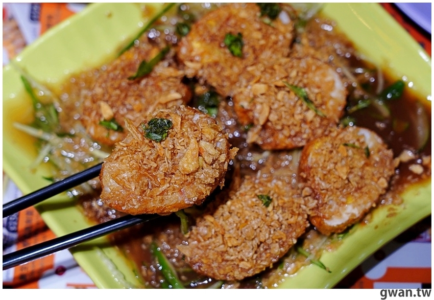女婿蛋先水煮再炸過,雖然蛋黃是全熟的,不過蛋白吃起來很嫩喔!再淋上羅望子醬汁,風味很特別