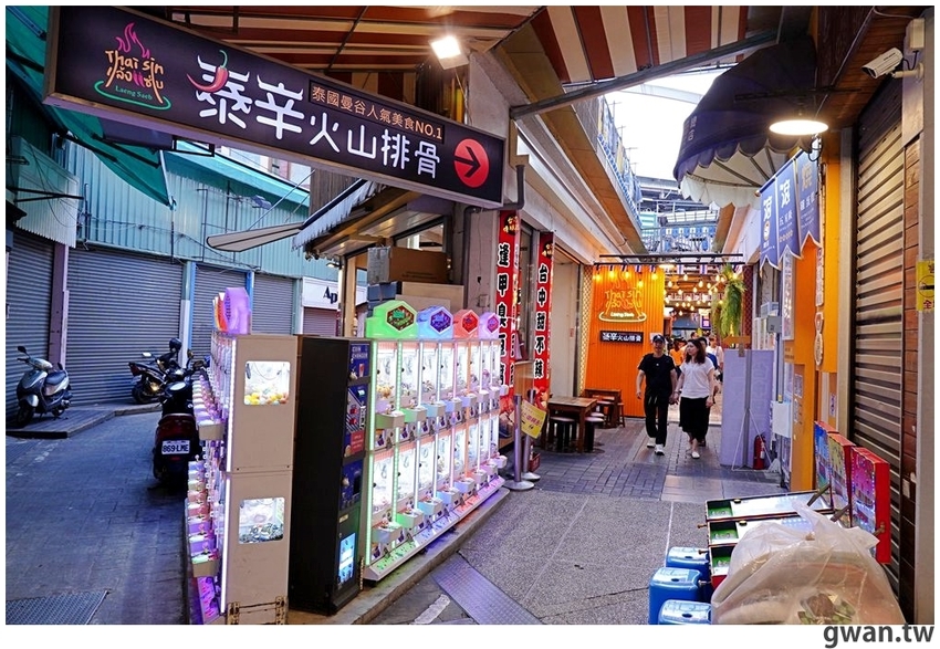 泰辛火山排骨/火山蝦 位在逢甲歡樂星裡面,從娃娃機跟黃金礦工的巷子裡走進去就會看到指標