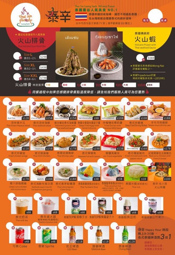 泰辛火山排骨菜單