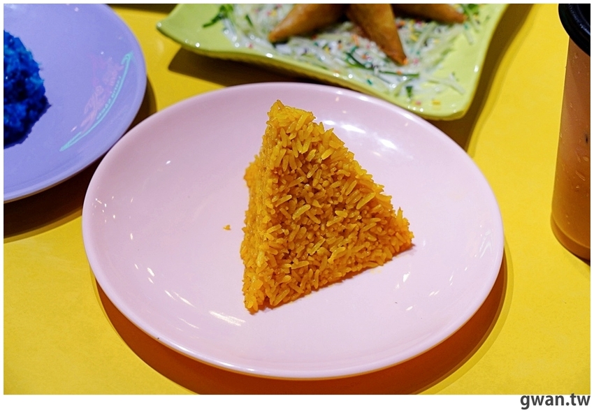 黃薑香飯帶有一點蒜香味道,似乎有用麻油,米飯會比較油潤的感覺,兩種飯都是用泰國香米製作,吃起來是粒粒分明的口感