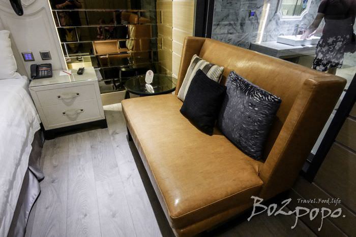 有對外窗,房間很寬大明亮,加上木質地板跟深色牆面,整個就是很有質感。