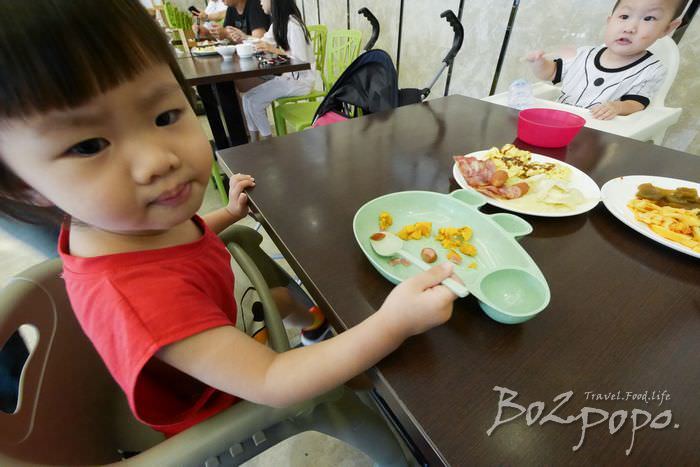 早餐部分:飯店有提供自助式早餐,在一樓的義思餐廳,空間還算寬廣,有提供兒童餐具。