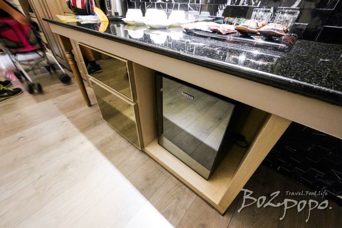 ▼冰箱內有提供飲用水,不過圖內那罐台啤應該是我老公自備的…😱