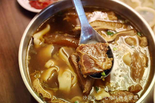 牛肉麵的麵條是寬版的,吃起來很有嚼勁與飽足感
