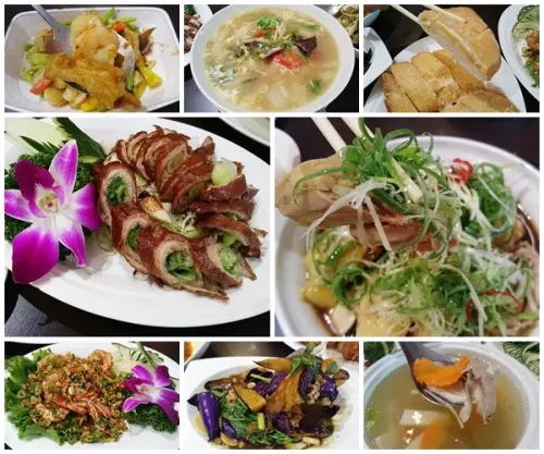 什錦炒飯、金沙澎湖中卷、陰豉蚵、蒸海吳郭魚、炒三鮮、虱目魚肚湯