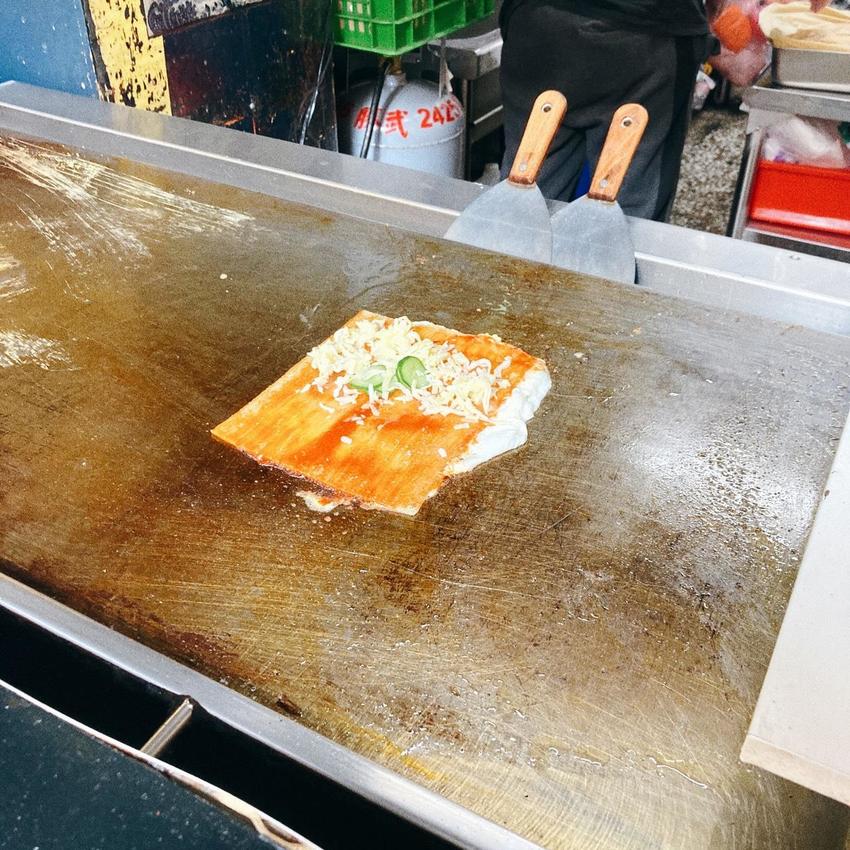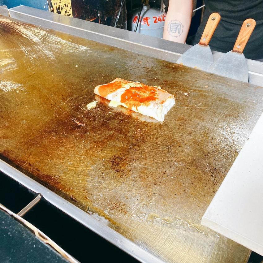 將冷麵置放在鐵板煎烤後加入配料