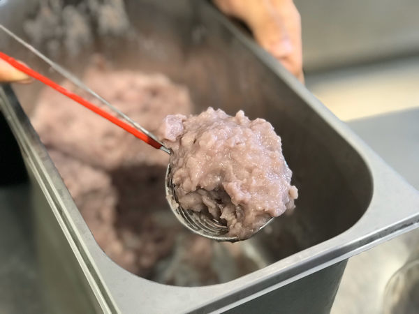 看看這個顆粒超多的芋頭泥!不是綿密QQ的芋泥,會吃得到比較硬一點的芋頭口感喔