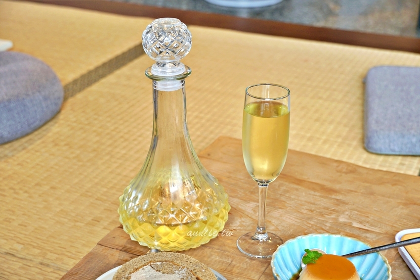用酒瓶裝著的金萱茶也太特別了吧,而且搭配的還是高腳杯,完全不像在喝茶呀!他們家的金萱茶味道喝起來比一般喝到的金萱要再濃一些,清新的新氣,很適合這炎炎夏日。