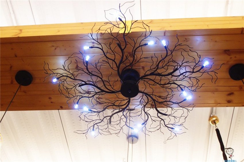 蝦拚鍋的內部裝潢和一般火鍋店大不相同,就連天花板的樹枝燈都帶著浪漫的巧思