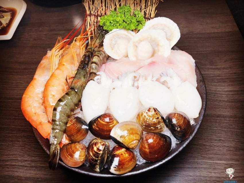 來吃蝦拚鍋的重點就是海鮮,這盤包括了天使紅蝦,白蝦,蛤蠣,花枝,扇貝和鯛魚