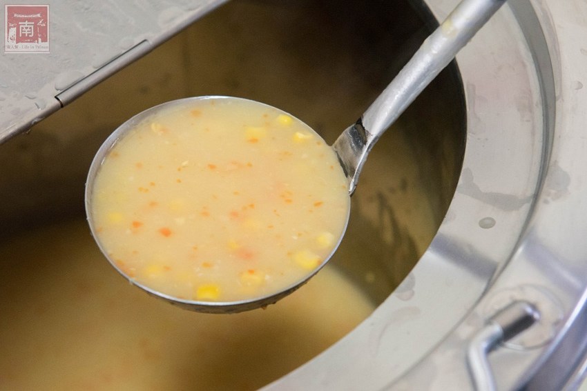 『玉米濃湯』我也覺得滿好喝的,一般市面上的濃湯喝到是滿滿的麵粉味道,但三葉的喝起來有玉米的香甜味,而且撈起來玉米也很多,而且紅蘿蔔也切的很細,撈起來也是很多的紅蘿蔔,奶香味道也十足,個人就喝了三碗。