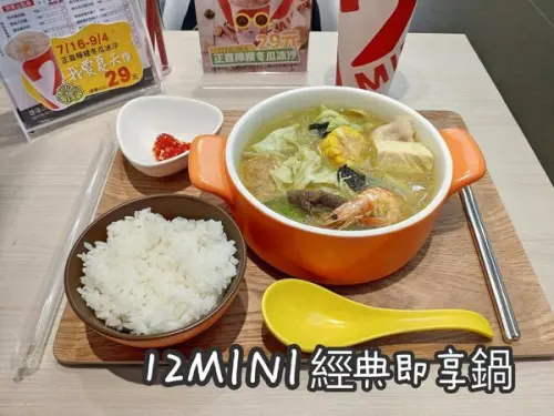 時序入秋,又是吃火鍋的旺季,忙碌的工商社會,愛吃火鍋的朋友,也不見得每回都約得到好友一起聚餐共食,這家由王品企業「石二鍋」於2018年推出的副品牌「12MINI 經典即享鍋」全台門市,提供一個人也能獨享火鍋的美妙滋味,今年七月初搭乘台北捷運,從南京復興站一出站,旁邊的「慶城街1號」百貨新改裝不久的B1美食廣場,一下樓梯右手邊,便可以看到這間「12MINI經典即享鍋-台北慶城店」窗明机淨,配色明亮的迷人身影,偌大的品牌廣告、新穎的櫥窗設計與排隊線路安排,顯得井然有序,店門口也有清楚的解說牌告知店內點餐的流程,店家也提供APPQRCode 快速點餐神器與外送餐點服務。