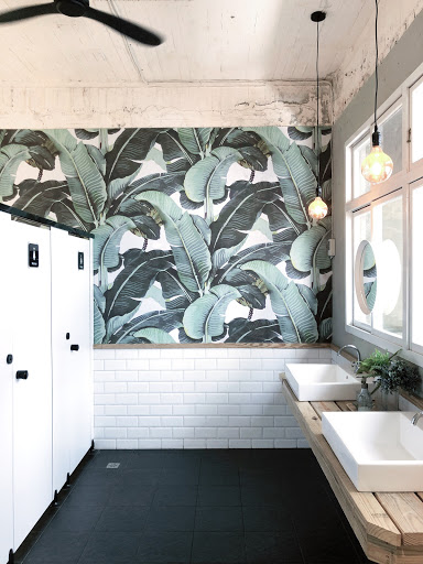 剛好洗手台的圓鏡還會反射圖騰,綠的傳達更有機。