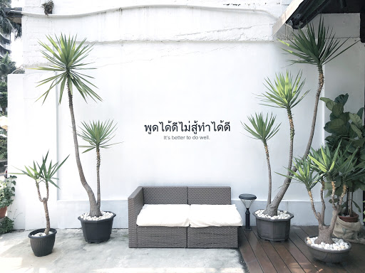 整齊乾淨排列磁磚鋪面,搭配一些泰味濃的綠意,