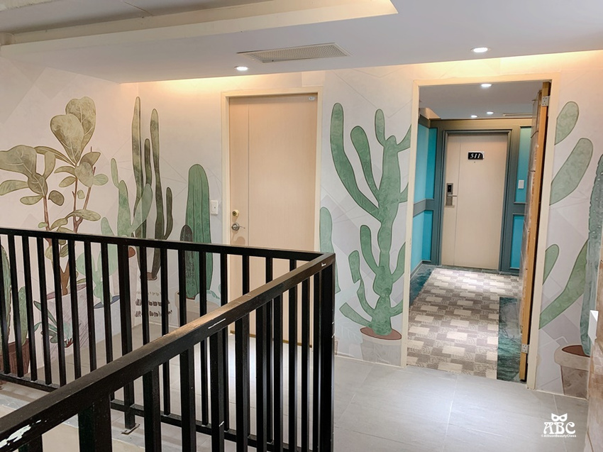 豐禾行旅很特別的地方是每個樓梯間都有主題背景牆,而且風格很多變,