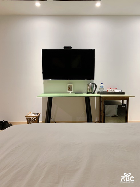 電視桌面也是飯店自己設計彩繪的!