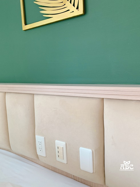 翻開四個大枕頭之後,後面有燈的開關,還有兩個插座,