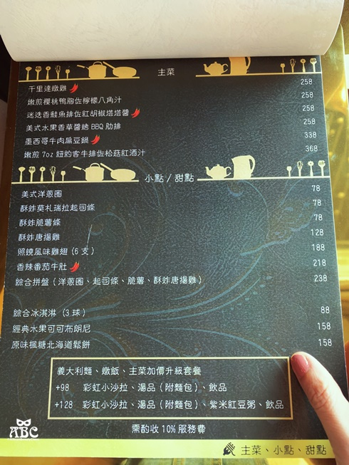 主菜的部分有燉雞、鴨胸、鮭魚、豬排、牛肉、牛排等,詳細參考下面圖片
