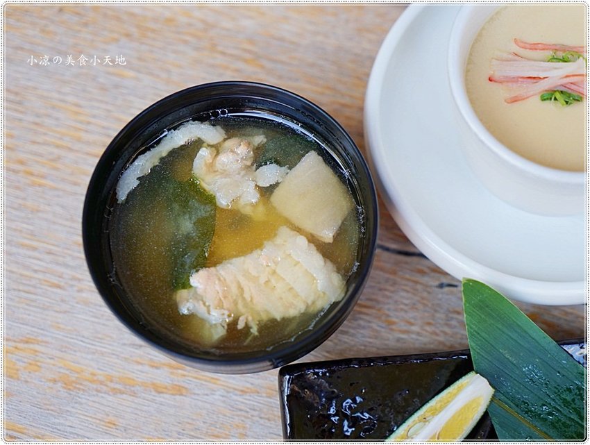 點迷你丼3拚附上一碗味噌湯、6拚附2碗味噌湯,味噌湯不死鹹好喝,還有魚肉唷!