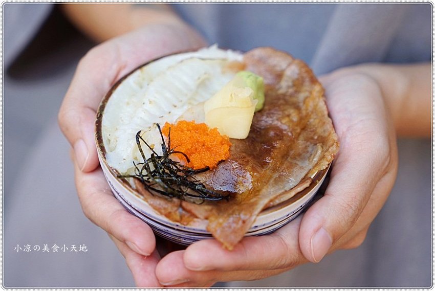 小凉個人超愛炙燒比目魚側鰭邊肉,享受那油脂融化在嘴裡頭的滿足感,啵棒!! 建議可以先單吃再將食材混和一起吃,層次更分明、口感更提升!