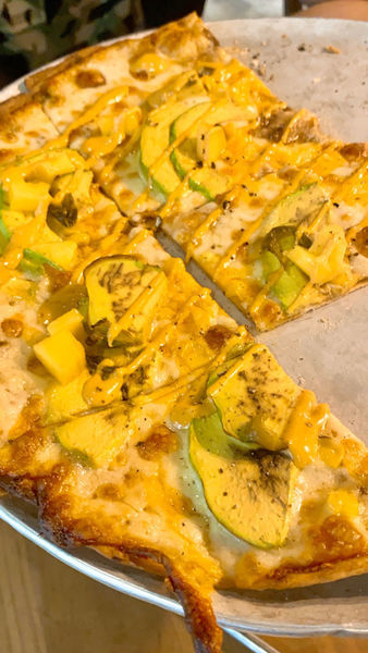「墨西哥酪梨芒果薄餅」算是新菜色(但不確定是否有季節限定),芒果微酸微甜的清爽搭配酪梨的滑順綿密,切達起司、香菜與墨西哥醬,層次感豐富卻又不膩,非常適合炎熱的夏季品嚐。