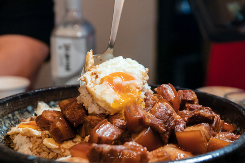 每一塊東坡肉都透著恰到好處的油亮,五花肉的豬皮層和瘦肉層比例得宜;挖下一口,當半熟蛋黃液和吸附醬汁的白飯混和在一起,搭配一塊軟嫩的東坡肉,的確不難理解為什麼即便已然飽足,也還是被搶著分食精光了吧。