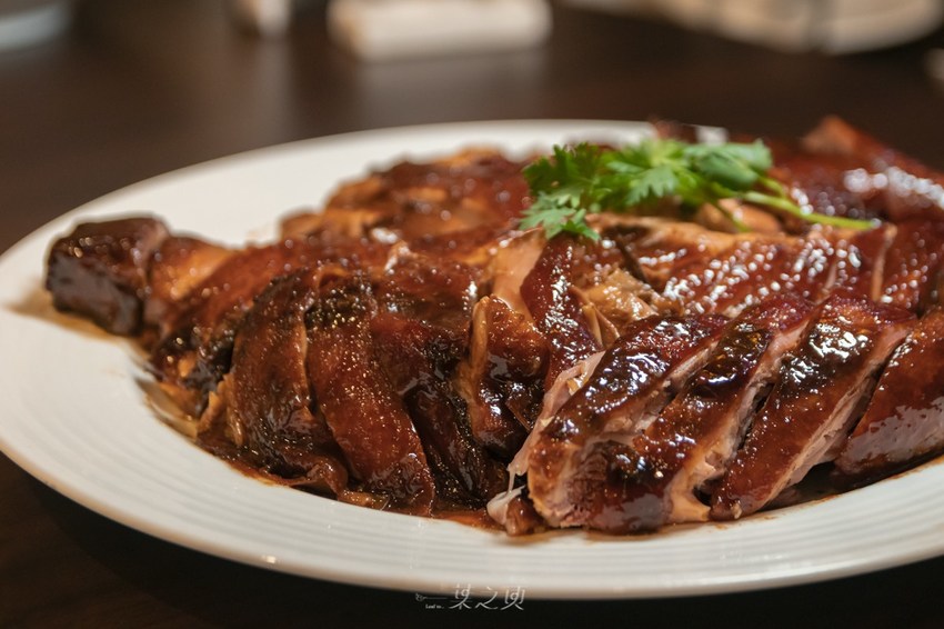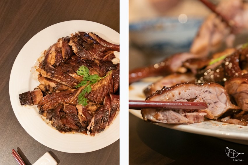 接連上了兩道肉品,一雞一鴨,這對於特別愛吃肉的我而言,還真是覺著特別舒爽(笑) 先上桌的冰糖醬鴨,一放上轉盤,就讓眾人忍不住一同「哇!」了一聲,鴨皮晶透的深邃焦糖色,光是賣相就令人口水直流;沾上一口鹹甜平衡的入味醬香,鴨皮和鴨肉一起入口,油脂香和軟嫩肉感並行,這讓一直以來只習慣吃烤鴨的我像是開了眼界,深深迷上這滋味。
