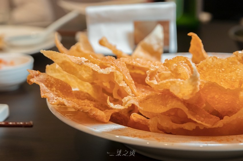我很懶,基本上在吃合菜時,像這樣要自己舀著、一份一份秀氣的吃著的料理,我通常吃過一份、嚐過味道後就懶得再動手了XD;不過這皮蛋醬脆皮餅,紮紮實實地讓我多吃了好幾片哪。